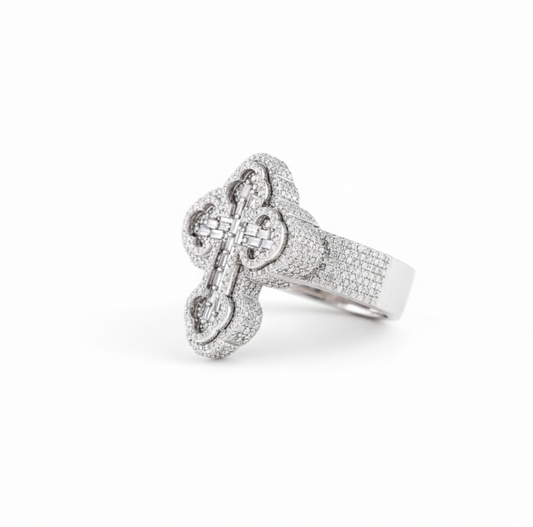 Full Iced Cluster Diamond Cross Pendant – Sterling Silver